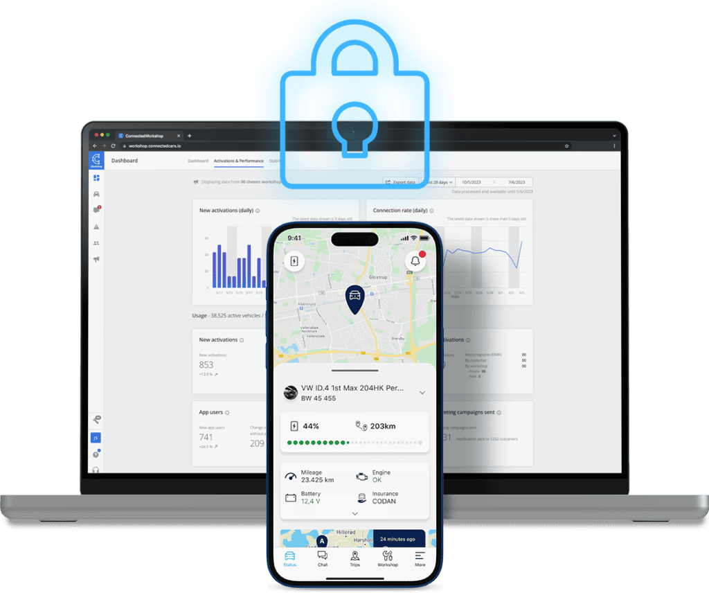 Connected Cars adheres to industry-leading IT standards and is fully compliant with the EU’s General Data Protection Regulation (GDPR). Our company has been rigorously audited and certified under the TISAX standard, among others, demonstrating our commitment to the highest standards of data security in the automotive industry. This commitment extends from the CC-Link device all the way to our customer frontends, ensuring comprehensive protection at every level.